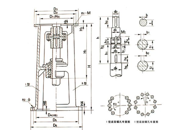 1.主要參數(shù)及尺寸 型號(hào) | H1 | H3 | H4 | H5 | H6 | 輸入端接口 | 輸出端接口 | D1 | D2 | D3 | n1-M | D4 | D5 | D6 | a˙ | n2-ф | DJ,LDJ30 | A | 320 | 15 | 20 | 4 | 6 | 140 | 160 | 190 | 4-M10 | 240 | 285 | 315 | 120 | 10-ф14 | B | 200 | 230 | 260 | 6-M12 | 1130 | 12-ф14 | DJ,LDJ35 | A | 334 | 17 | 20 | 5 | 6 | 170 | 200 | 230 | 6-M10 | 260 | 320 | 360 | 120 | 10-ф14 | 6-M12 | 1130 | 12-ф14 | DJ,LDJ40 | A | 334 | 17 | 20 | 4 | 6 | 200 | 230 | 260 | 6-M10 | 260 | 320 | 360 | 120 | 10-ф14 | B | 230 | 260 | 290 | 6-M12 | 1130 | 12-ф14 | DJ,LDJ45 | A | 338 | 20 | 20 | 5 | 6 | 200 | 230 | 260 | 6-M10 | 260 | 320 | 360 | 120 | 10-ф14 | 6-M12 | 1130 | 12-ф14 | DJ,LDJ55 | A | 372 | 22 | 24 | 6 | 6 | 270 | 310 | 340 | 6-M10 | 325 | 400 | 435 | 30 | 12-ф14 | B | 5 | 305 | 8-M12 | DJ,LDJ65 | A | 447 | 22 | 24 | 6 | 6 | 316(320) | 360 | 400 | 8-M12 | 350 | 420 | 460 | 30 | 12-ф18 | 8-M16 | DJ,LDJ70 | A | 447 | 22 | 24 | 6 | 6 | 316(320) | 360 | 400 | 8-M12 | 350 | 420 | 460 | 30 | 12-ф18 | B | 5 | 320 | 8-M16 | DJ,LDJ80 | A | 495 | 22 | 28 | 6 | 8 | 345 | 390 | 430 | 8-M12 | 380 | 455 | 495 | 30 | 12-ф18 | B | 5 | 360 | 410 | 460 | 8-M20 | DJ,LDJ90 | A | 519 | 22 | 28 | 7 | 8 | 400 | 450 | 490 | 12-M16 | 430 | 510 | 555 | 30 | 12-ф23 | 12-M20 | DJ,LDJ100 | A | 535 | 25 | 28 | 9 | 10 | 455(460) | 520 | 580 | 12-M20 | 480 | 560 | 600 | 22.5 | 12-ф23 | B | 5 | 470 | DJ,LDJ110 | A | 660 | 30 | 28 | 11 | 10 | 520 | 590 | 650 | 12-M20 | 560 | 65 | 700 | 22.5 | 16-ф27 | B | 6 | DJ,LDJ120 | A | 660 | 30 | 38 | 11 | 10 | 520 | 590 | 650 | 12-M20 | 560 | 650 | 700 | 22.5 | 16-ф27 | DJ,LDJ130 | A | 790 | 45 | 40 | 12 | 10 | 680 | 800 | 880 | 12-M30 | 720 | 810 | 880 | 18 | 20-ф27 | B | 9 | DJ,LDJ140 | A | 790 | 45 | 40 | 12 | 12 | 680 | 800 | 880 | 12-M30 | 720 | 810 | 880 | 18 | 20-ф27 | 9 | DJ,LDJ150 | - | 790 | 45 | 45 | 14 | 12 | 820 | 940 | 1020 | 12-M30 | 840 | 940 | 1020 | 22.5 | 16-ф33 | 10 | DJ,LDJ160 | - | 810 | 50 | 50 | 14 | 12 | 820 | 940 | 1020 | 12-M30 | 840 | 940 | 1020 | 22.5 | 16-ф33 | 10 | DJ,LDJ180 | - | 910 | 55 | 50 | 14 | 12 | 960 | 1080 | 1020 | 12-M30 | 970 | 1080 | 1160 | 18 | 20-ф33 |