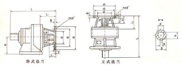 尺寸系列 機型號 | 電動機 功率KW | 電動機 機座號 | L | L1 | H | B | f | d1(公差) | d2 | d3 | d(公差) | D | h | b | nxd | |||
