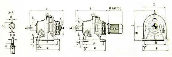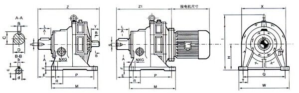 B系列(機(jī)械部標(biāo)) | 12 | 15 | 18 | 22 | 27 | 30 | 33 | 39 | 45 | 55 | 65 | X系列 | 2 | 3 | 4 | 5 | 6 | 7 | 8 | 9 | 10 | 11 | 12 | B系列(上海標(biāo)) | B10 | B11 | B12 | B13 | B14 | B14A | B15 | B16 | B17 | B18 | B19 | B系列(機(jī)械部標(biāo)) | 1812 | 2215 | 2715 | 3018 | 3322 | 3922 | 4527 | 5530 | 6533 | X系列 | 42 | 53 | 63 | 74 | 84 | 95 | 106 | 117 | 128 | B系列(上海標(biāo)) | B120A | B131A | B141A | B142A | B153A | BB163 | B174 | B184 | B195 | 本公司其他產(chǎn)品介紹:1、生產(chǎn)JB型HG5-251-79 | 2、生產(chǎn)與其他特殊動(dòng)力源相配套的法蘭聯(lián)接擺針輪減速機(jī) | 五、擺線(xiàn)針輪減速機(jī)外形及安裝尺寸1、BW、BWY外型及安裝尺寸 |